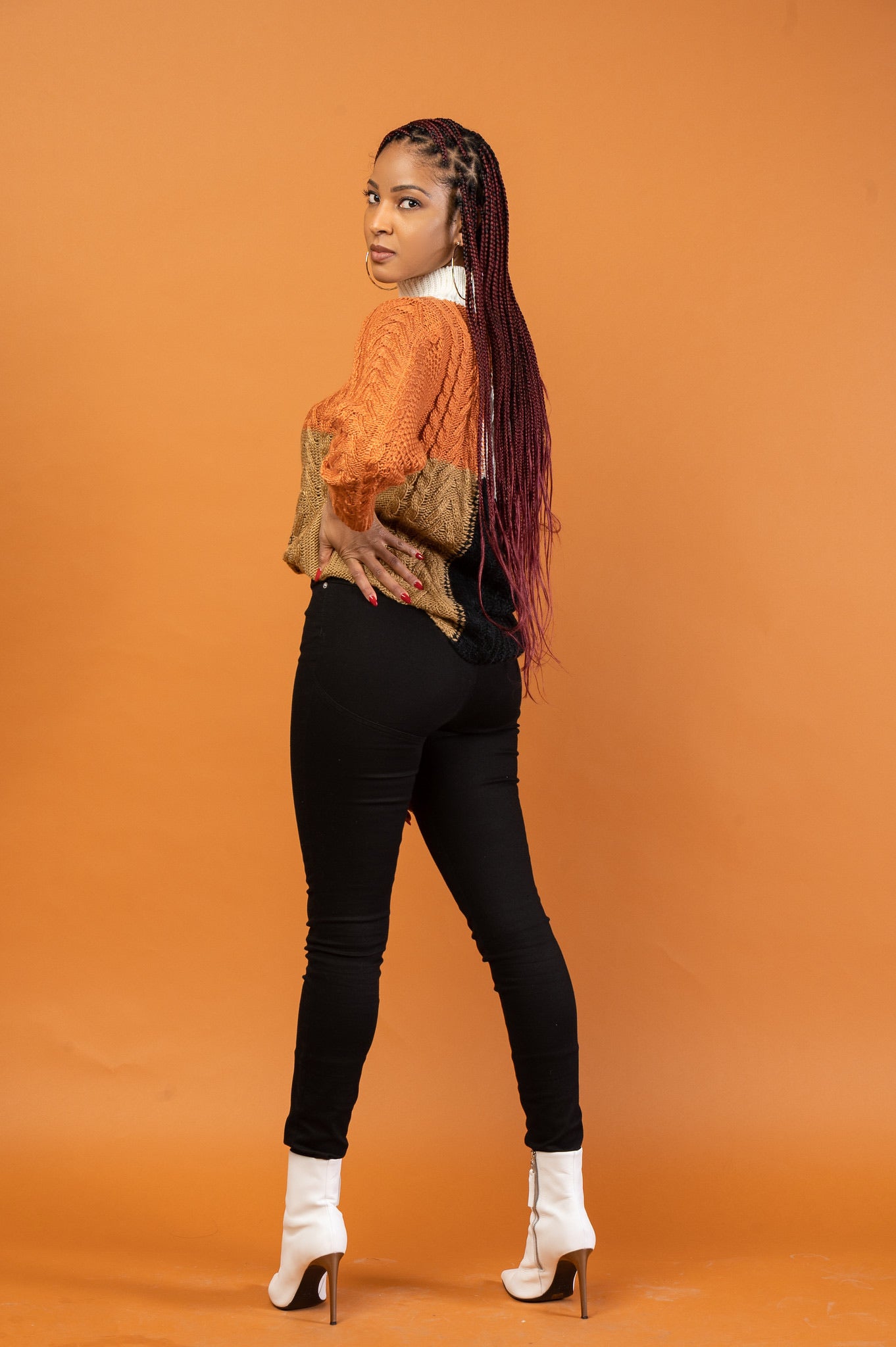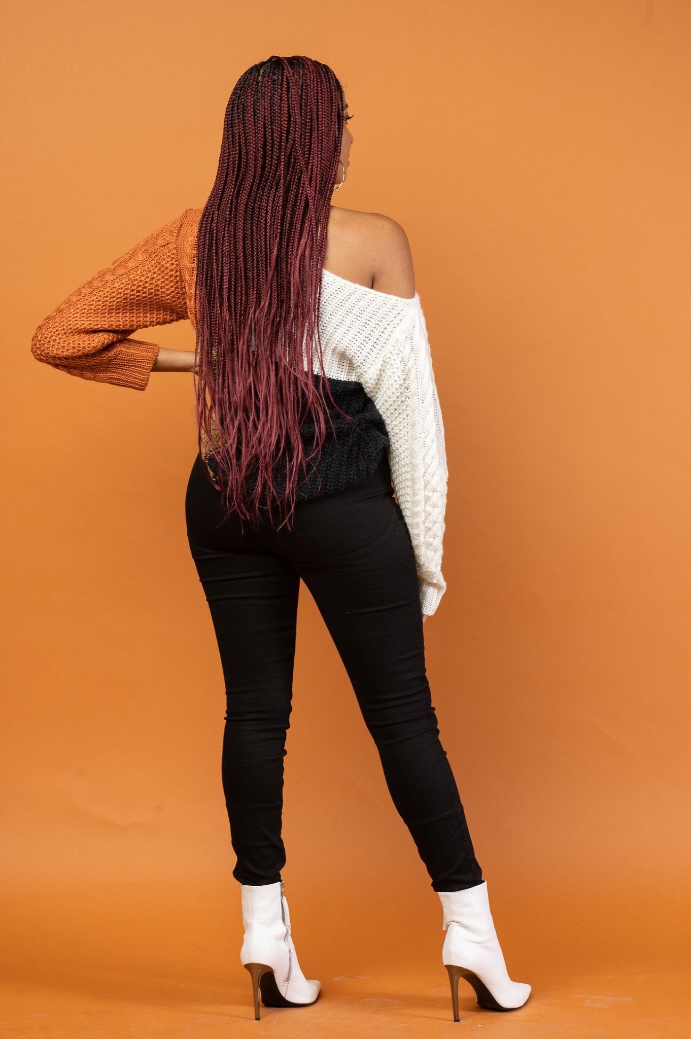 Our LATIFAH cable knit sweater has beautiful earthy hues featuring long sleeves, loose body silhouette and asymmetric style at the neck.